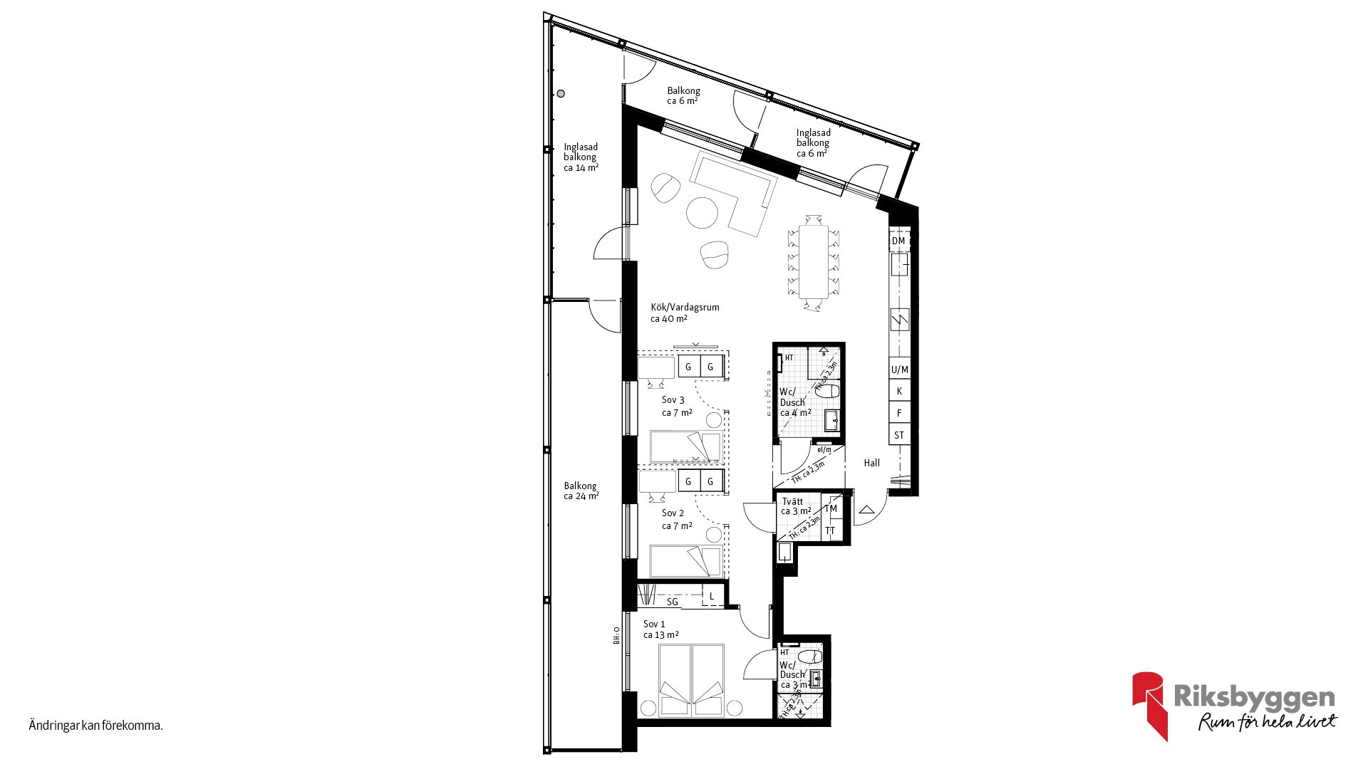Rymlig 4 rok med balkonger runt om och generösa sociala ytor. En bostad där ljus och rymd står i fokus. Här bor du i en genomtänkt 4 rok med hela fyra balkonger, två inglasade och två öppna. Det stora kök och vardagsrum i öppen planlösning erbjuder gott om plats.Tre sovrum ger flexibilitet för familj, gäster eller hemmakontor. Ett badrum med tvättdel och en wc/dusch, som gör vardagen extra smidig. Ett hem där funktion, komfort och fina sociala ytor möts,