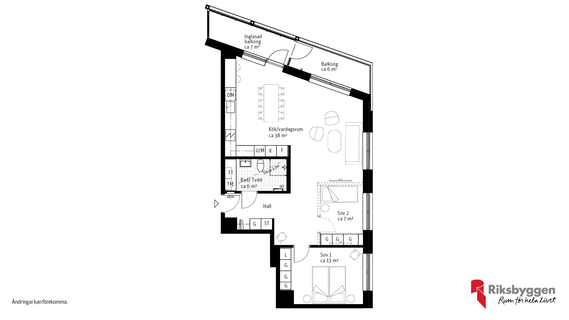 Härlig gavel 3;a om 78 kvm på åttonde våningen. Fönster i två väderstreck som skapar ett fantastiskt ljus. Det öppna kök/vardagsrummet om ca 38 m² har utgång till två balkonger i härligt västerläge, en öppen och en inglasad, perfekta för eftermiddags- och kvällssol. Två sovrum med bra förvaring. Möjlighet att göra frånval på sovrum 2 till fördel för ett större vardagsrum. Funktionellt badrum med tvättmöjligheter.