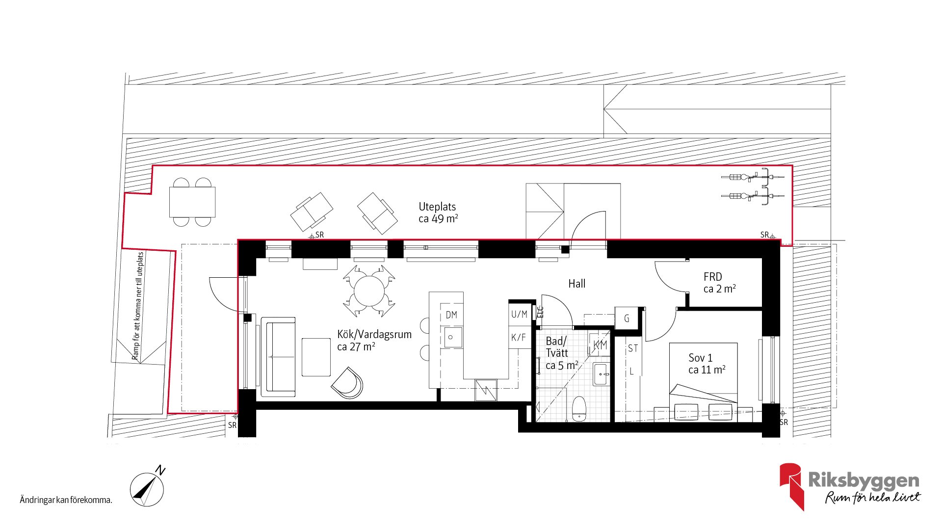 Charmig tvåa som är en perfekt lägenhet för dig som drömmer om att bo med egen uteplats. Det öppna köket och vardagsrummet skapar en ljus och luftig känsla med direkt utgång till den fina uteplatsen på hela 49 kvm. Badrummet med kombimaskin gör vardagen praktisk och smidig. Bra förvaring i förråd i lägenheten.