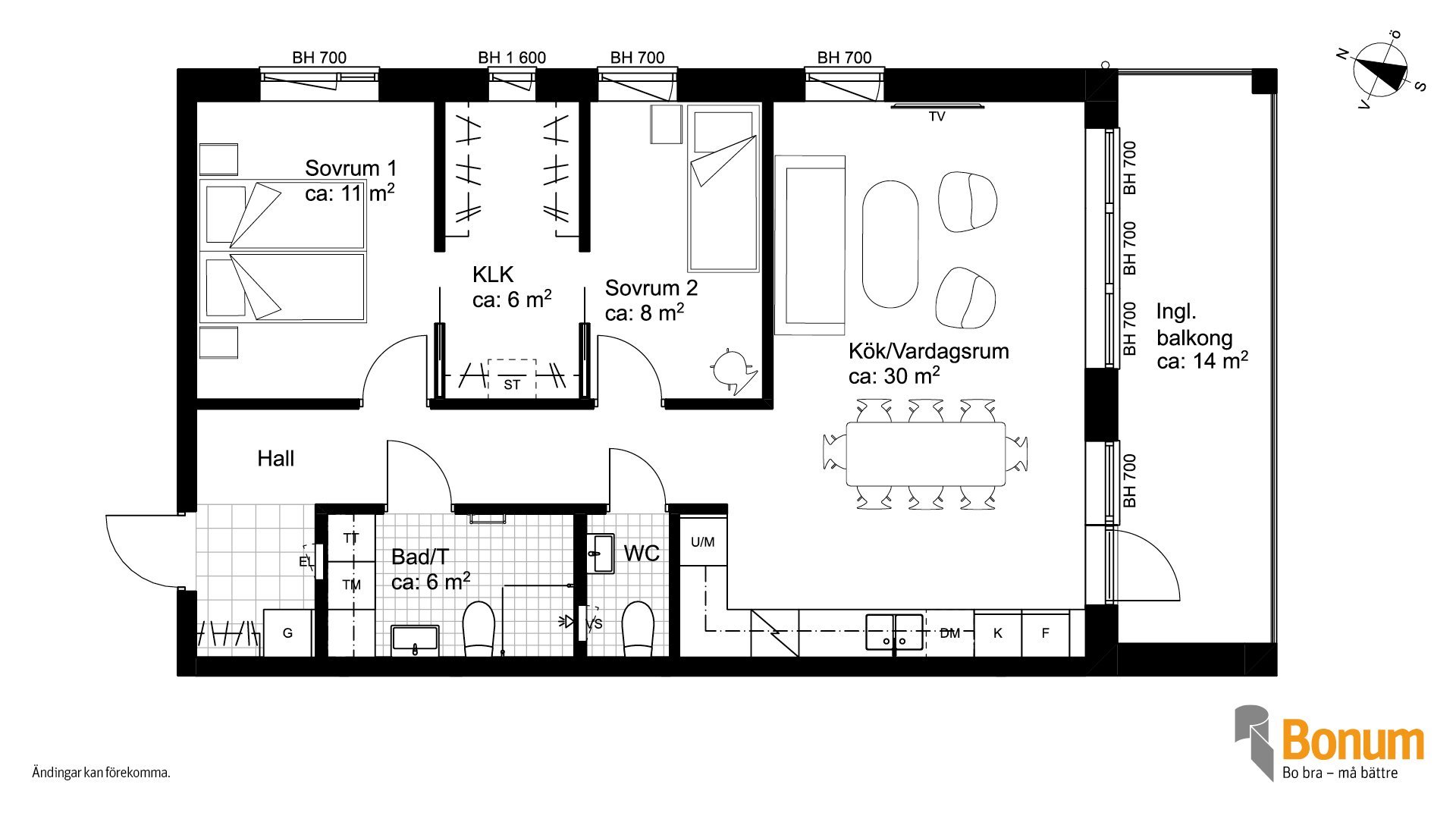 Planlösningarna är skapade för att kunna anpassas efter livets förändringar, så att du kan bo kvar länge och känna dig trygg i att hemmet fungerar både idag och i framtiden.