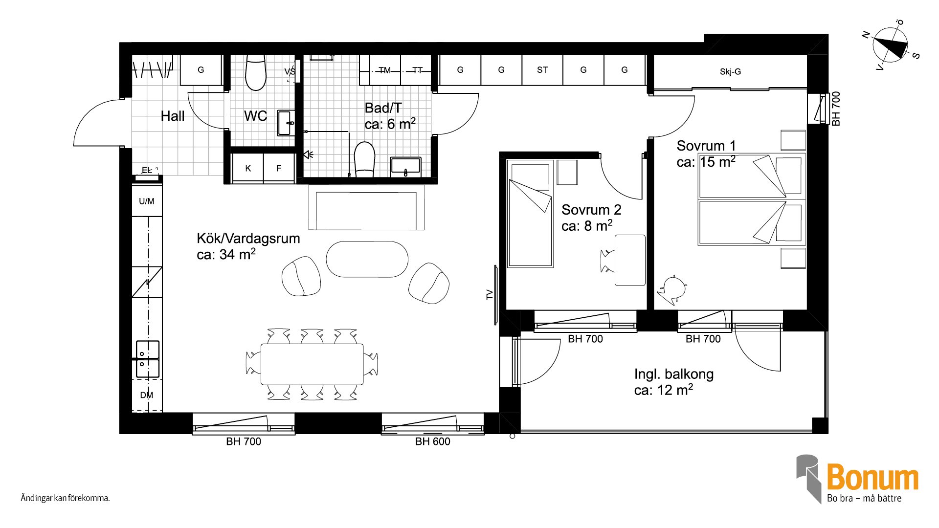 Planlösningarna är skapade för att kunna anpassas efter livets förändringar, så att du kan bo kvar länge och känna dig trygg i att hemmet fungerar både idag och i framtiden.
