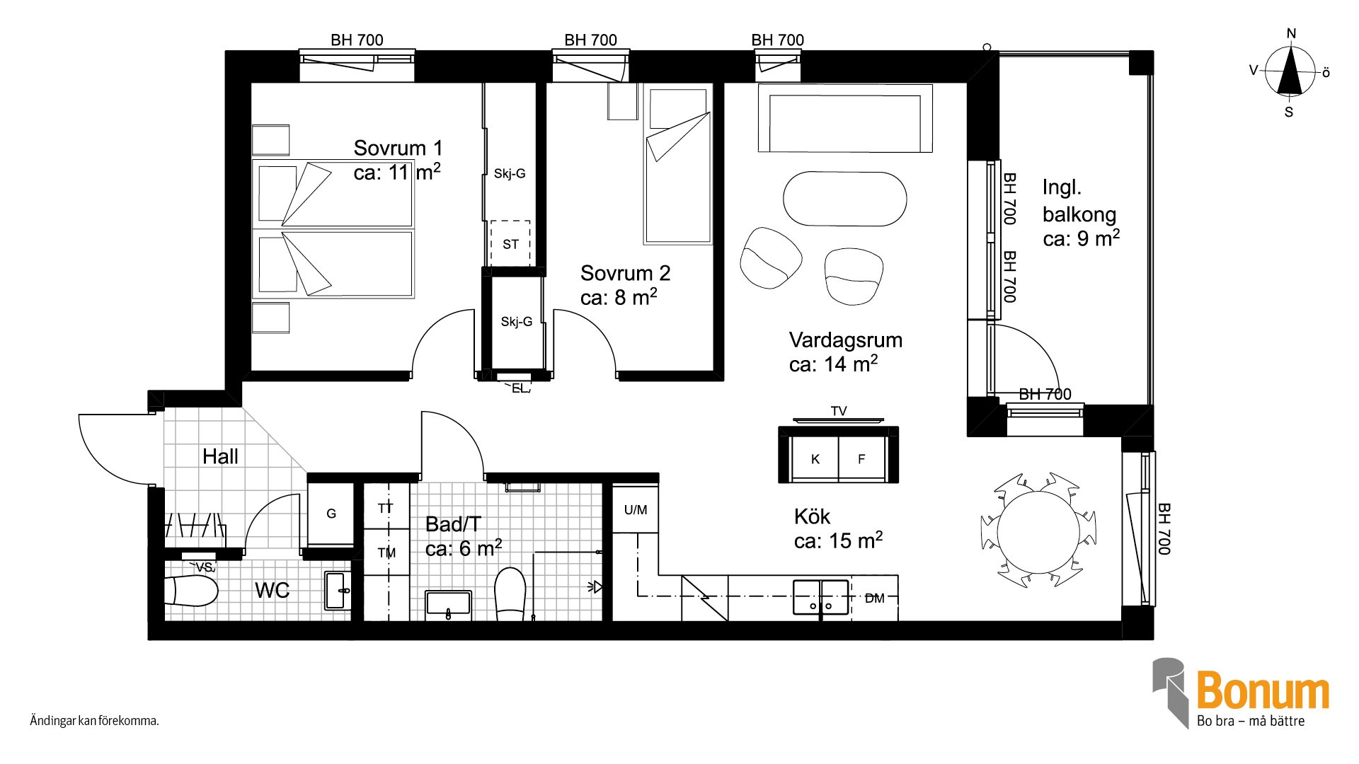 Planlösningarna är skapade för att kunna anpassas efter livets förändringar, så att du kan bo kvar länge och känna dig trygg i att hemmet fungerar både idag och i framtiden.