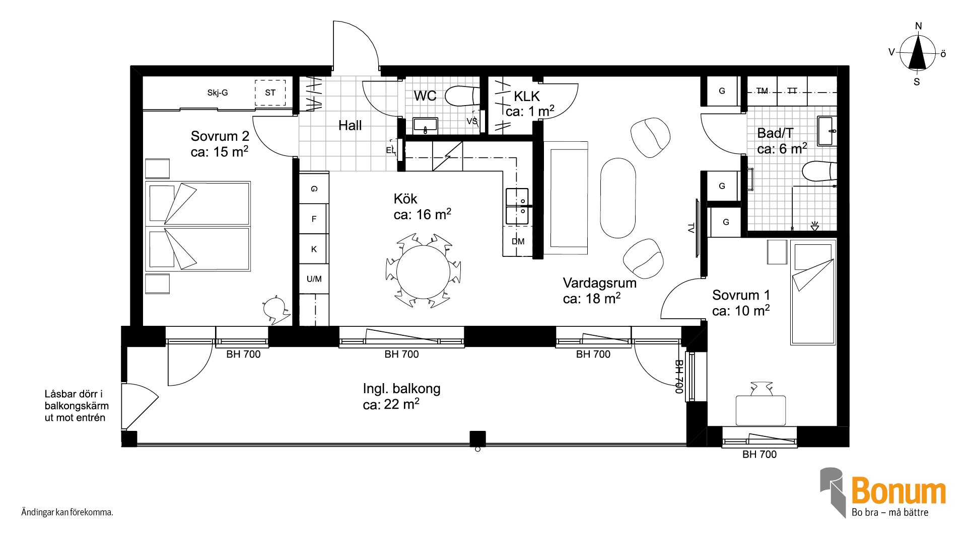 Planlösningarna är skapade för att kunna anpassas efter livets förändringar, så att du kan bo kvar länge och känna dig trygg i att hemmet fungerar både idag och i framtiden.