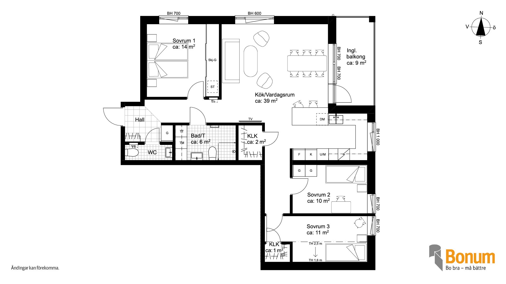 Planlösningarna är skapade för att kunna anpassas efter livets förändringar, så att du kan bo kvar länge och känna dig trygg i att hemmet fungerar både idag och i framtiden.