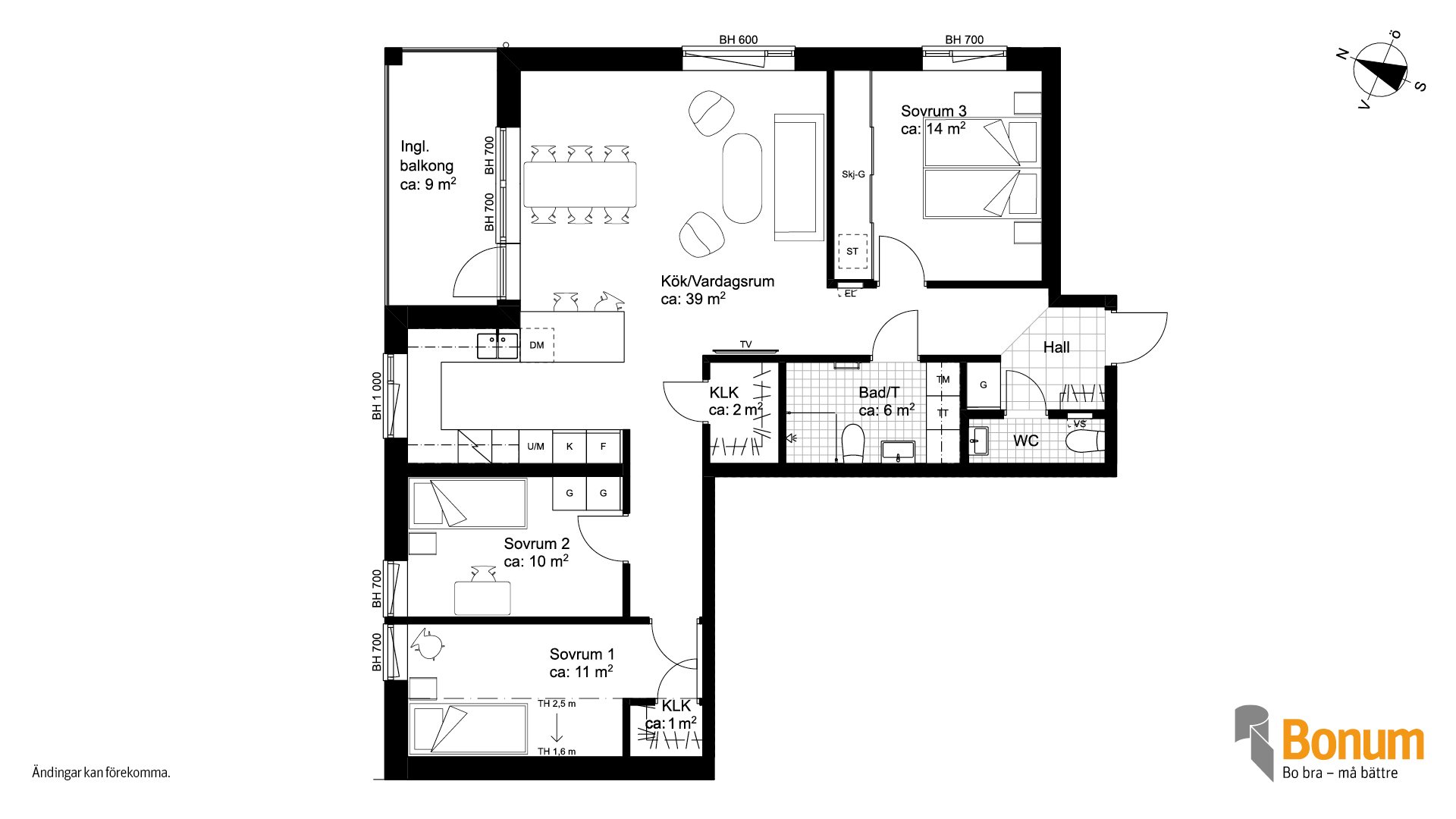 Planlösningarna är skapade för att kunna anpassas efter livets förändringar, så att du kan bo kvar länge och känna dig trygg i att hemmet fungerar både idag och i framtiden.