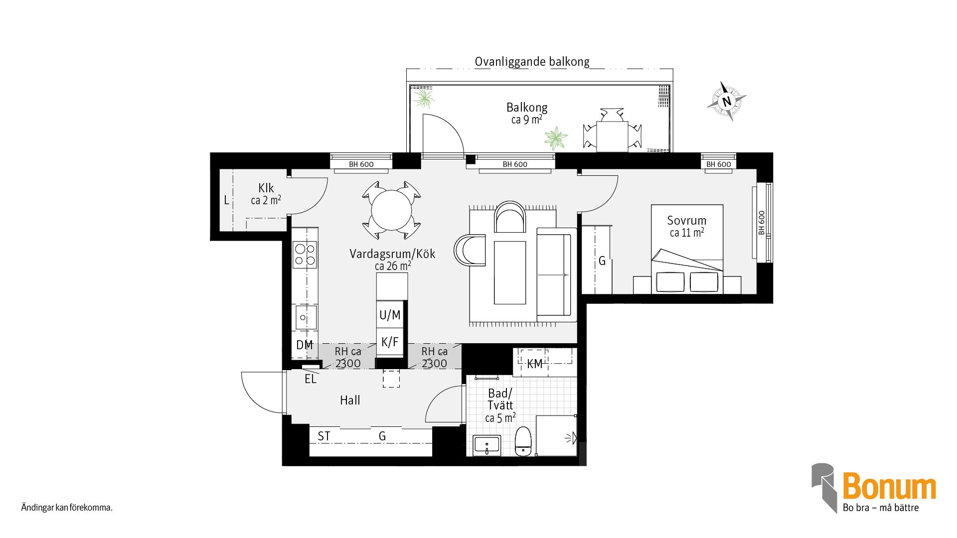Gavellägenhet, 2 rum och kök om ca 53 kvm, med fönster i två väderstreck. Kök och vardagsrum i öppen planlösning men köket delvis avskilt från vardagsrummet. Från kök/vardagsrummet når du den inglasade balkongen. Du förvarar dina saker i skjutdörrsgarderober och i en klädkammare. I badrummet finns tvättutrustning.