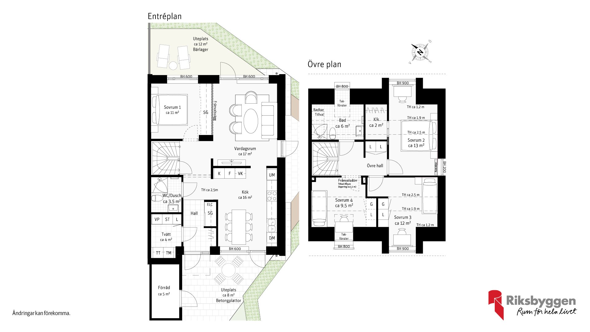 Interiören bjuder på gott om plats för familjen med minst tre sovrum (upp till fem), två badrum och generösa ytor för umgänge och vardagsmys. Här finns rum för alla att trivas i. Ute i det fria väntar vackert teglade hus med soldränkta trädäck och sköna gräsmattor att njuta av för både små och stora fötter.