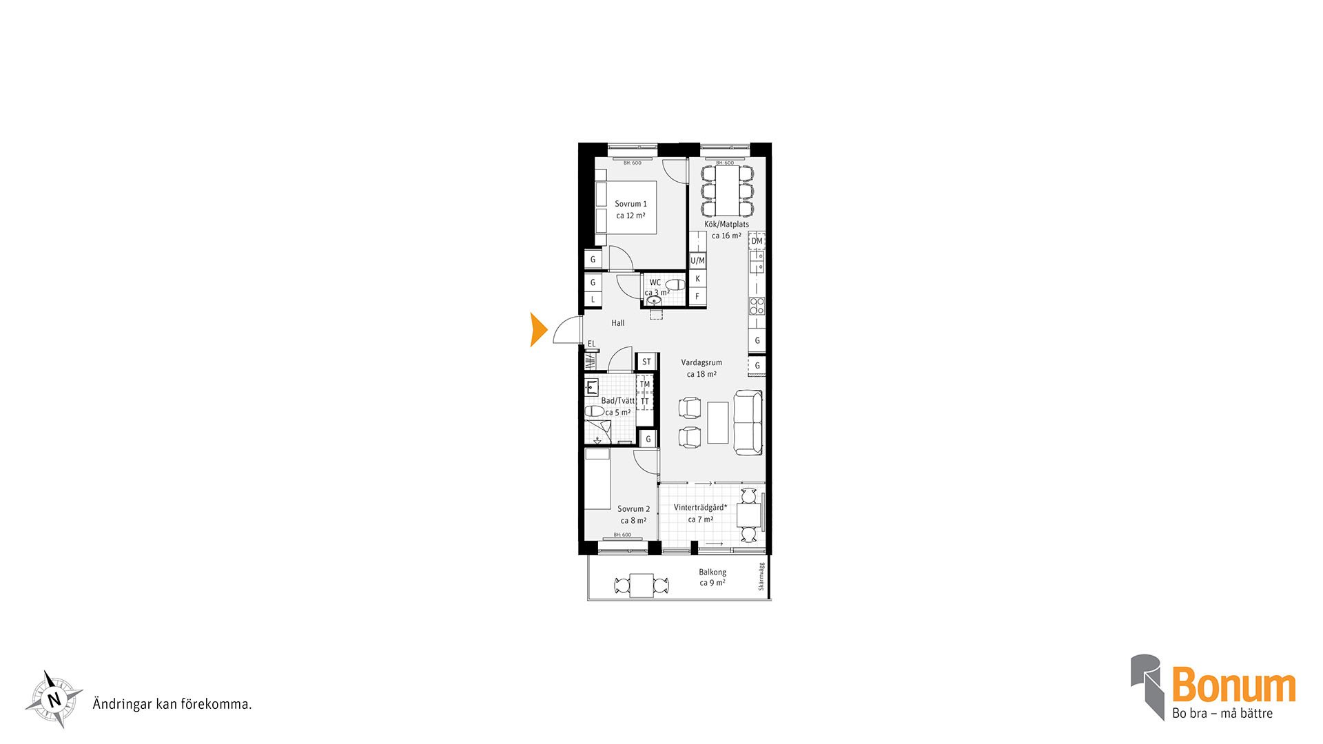 Genomgående lägenhet med balkong i sydväst. I lägenheten finns en unik vinterträdgård med glasade väggar, i anslutning till balkongen. Här kan du njuta året runt och odla dina växter. Flexibel planlösning med möjlighet till större vardagsrum. Rymligt badrum med tvättmaskin och torktumlare samt gästwc. Bläddra i inredningsmagasinet för att välja inredning i din nya bostad. I lägenhetsväljaren kan du se var lägenheten ligger i huset.