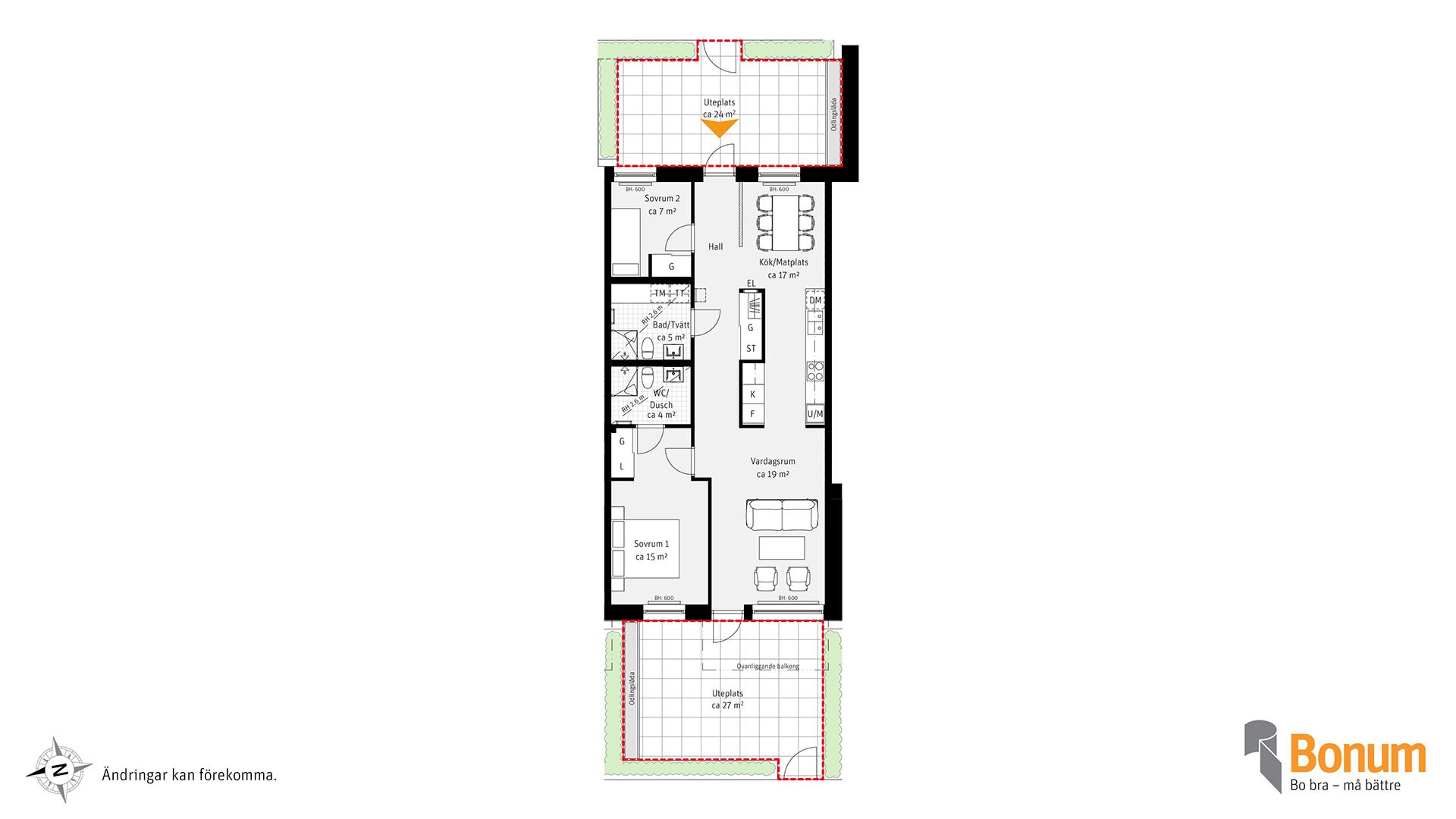 Genomgående lägenhet i markplan med egen entré. Lägenheten har två uteplatser varav en i västerläge. Rymligt vardagsrum i anslutning till uteplatsen. Lägenheten har ett badrrum med tvättmaskin/torktumlare samt ett WC/Dusch. Bläddra i inredningsmagasinet för att välja inredning i din nya bostad. I lägenhetsväljaren kan du se var lägenheten ligger i huset.