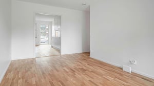 Väggarna är vitmålade och i hallen har vi lagt klinker som sedan övergår i parkettgolv. Lägenhetsförråd finns till varje lägenhet och är beläget på vinden