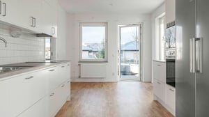 Här möts du av ljusa planlösningar, parkettgolv utan trösklar och kök från Vedum i smakfullt vitt eller grått utförande med rostfria vitvaror. De kaklade badrummen är både praktiska och stilrena med tvättmaskin och torktumlare. I alla bostäder från tre rum och kök och uppåt finns två toaletter, en detalj som gör livet enklare och bekvämare.