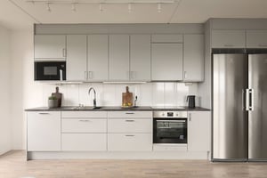 Ett av det bästa med att flytta in i en alldeles ny lägenhet är att få ett alldeles nytt kök. Med nya snickerier, ny bänkskiva och nya rostfria vitvaror. Våra inredare har valt varje detalj med omsorg för att skapa kök som samtidigt är moderna och tidlösa, och som kommer att hålla stilen länge. Allt är noga utvalt och färdigt att börja skapa matglädje i. Och genom att vi gjort valen från början tillkommer inga extra kostnader, det ingår i priset.