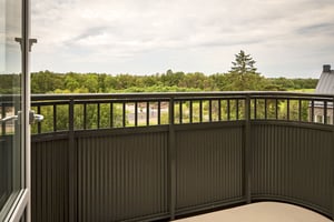 Bostäderna är ljusa och inredda med naturliga material. På utsidan antingen puts i naturfärger som grön och beige eller tegel. Huset smälter nästan in i omgivningen och de rundade balkongerna vetter här mot öst eller väst. Antingen blir det frukost i morgonsolen eller kanske en fika med kvällssolen som lampa.