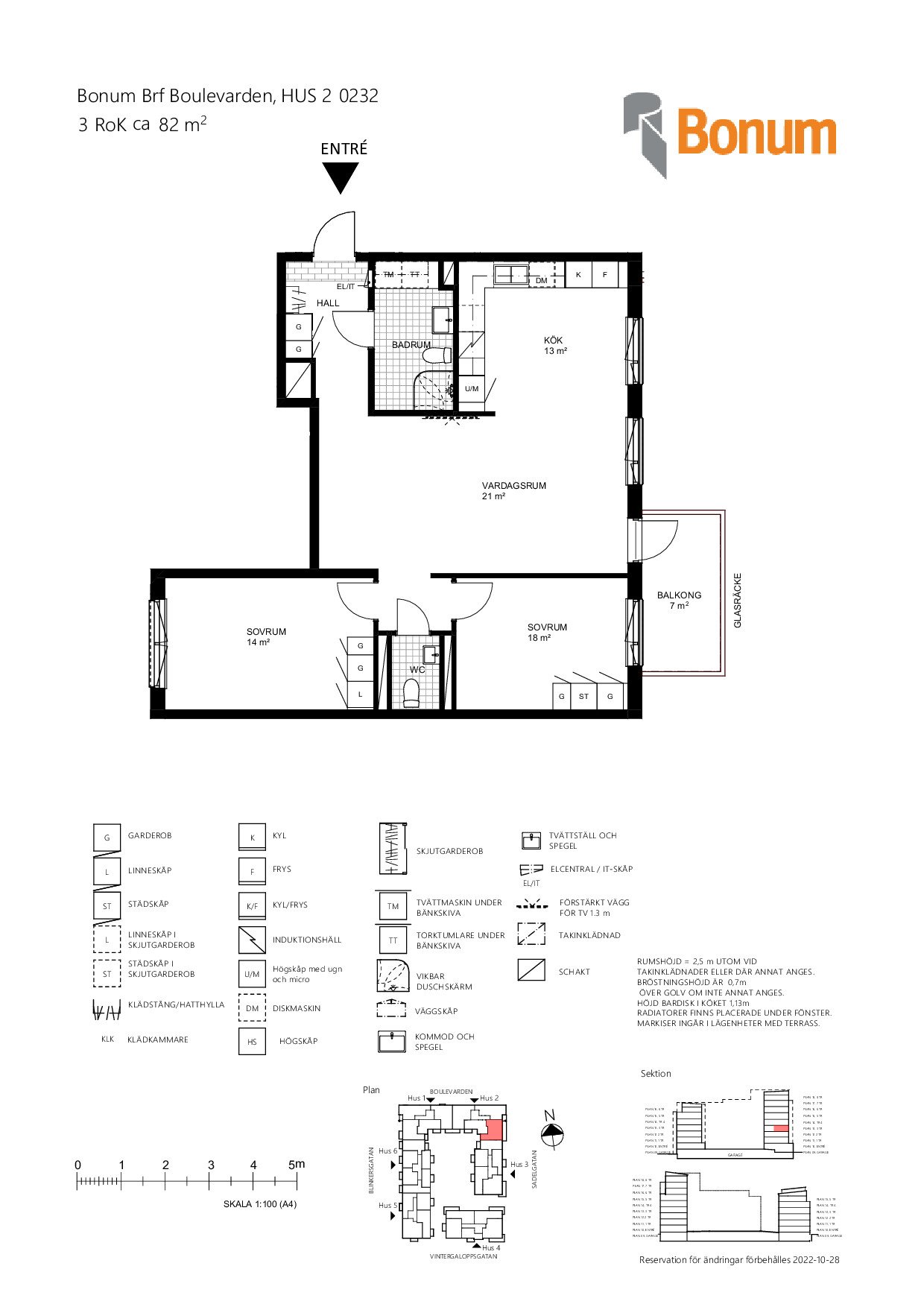 3 rok om ca 82 kvm med extra wc, på våning 3 med balkong i österläge. Genomgående lägenhet med öppen planlösning mellan kök och generös vardagsrum. Kök med inredningsstilen Natur med sandbeiga köksluckor, köksbänk i laminat Impanema vit och som stänkskydd. Badrum med inredningsstilen Sinne med greige matt kakel och klinker. Dusch med svängda dörrar, förhöjd wc, tvättställ med sandbeige kommod, TM och TT. Två rymliga sovrum. Källarförråd tillhör bostaden.