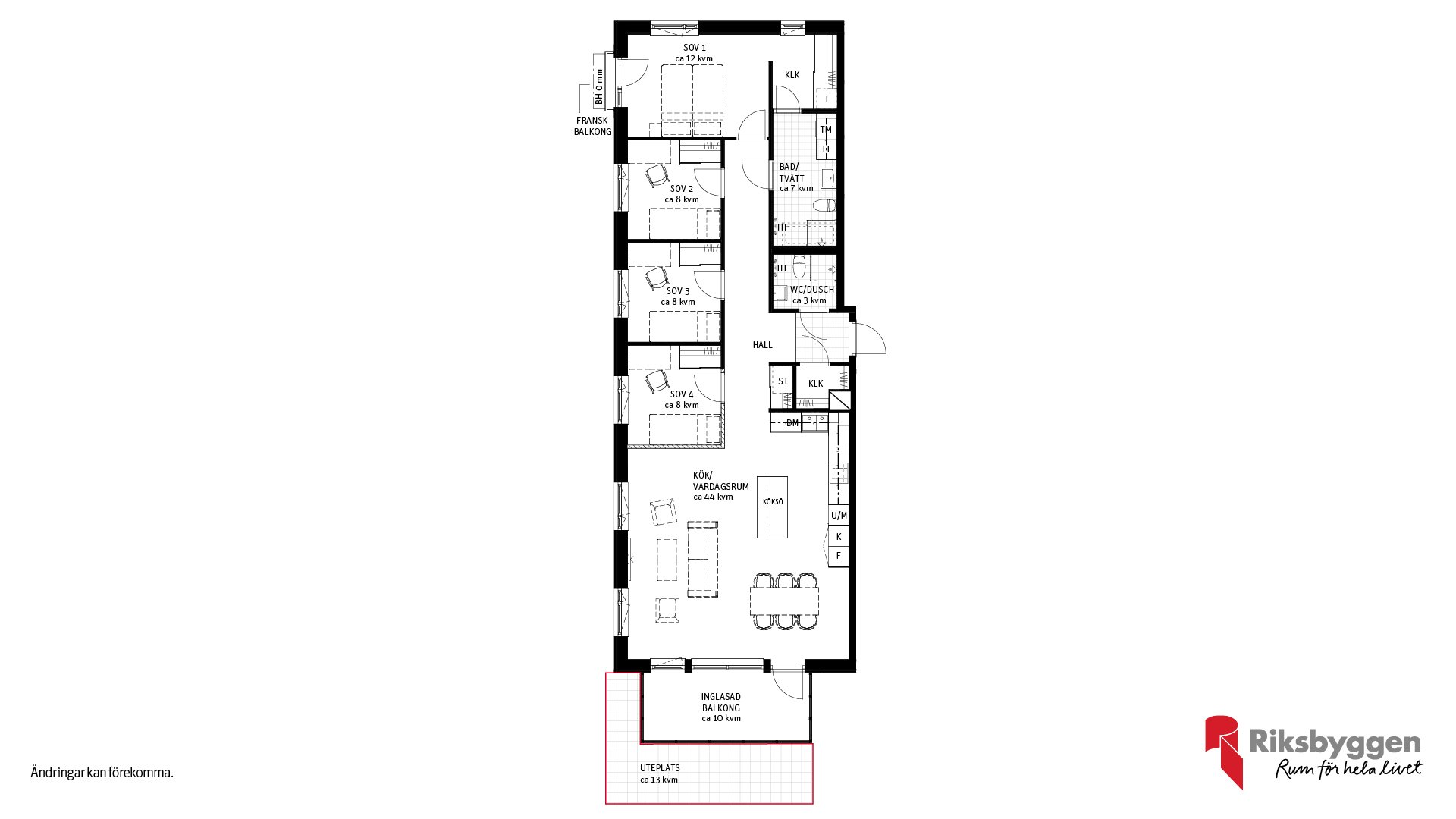 Exklusiv femrummare med inglasad balkong och uteplats. Denna exklusiva femrummare på Södra Sommarro erbjuder allt du kan önska dig. Med fyra sovrum, ett stort vardagsrum öppet mot kök med köksö och en rymlig balkong är detta hemmet för den stora familjen eller för dig som bara vill ha gott om plats. Flexibel om du vill välja bort ett av sovrum till fördel för ett större vardagsrum, välj det som passar dig bäst.