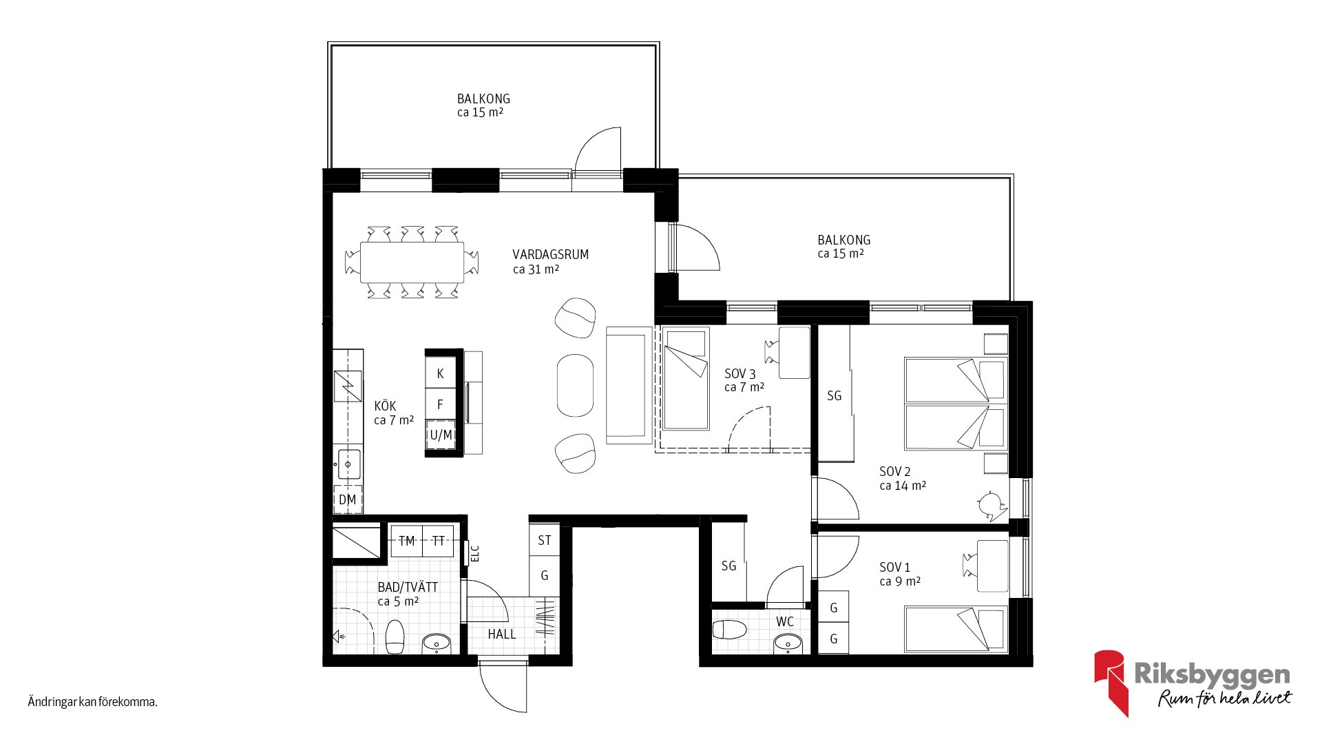 Här har vi tänkt till för att ge dig ett hem som passar just din livsstil. För dig som vill ha extra rymd och sociala ytor finns möjlighet att välja bort vissa innerväggar – till exempel mellan sovrum och vardagsrum – och i stället få ett större, öppnare vardagsrum. Det är ett perfekt alternativ för dig som prioriterar kvadratmetrar och ljus framför antal rum.