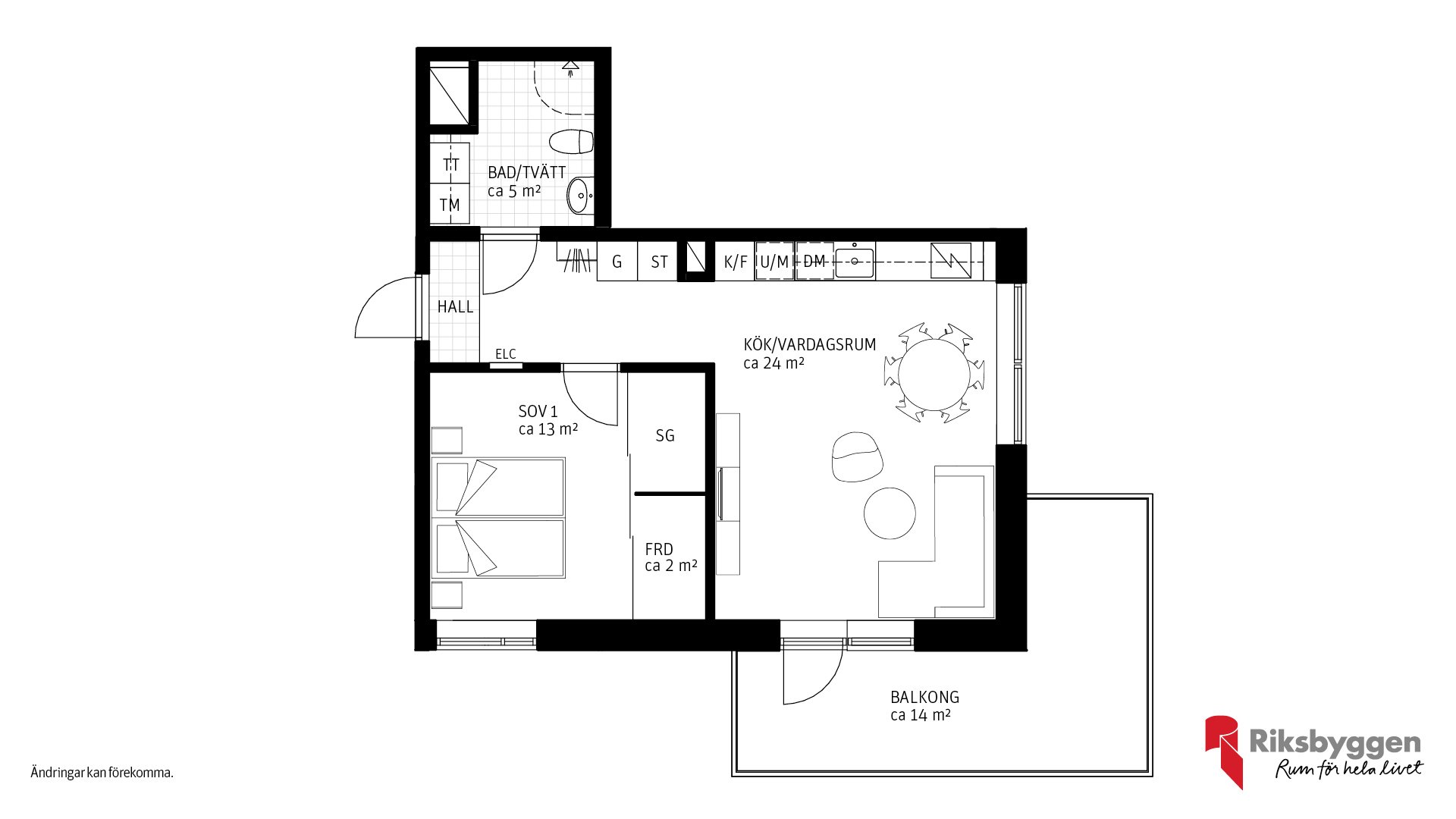 Här har vi tänkt till för att ge dig ett hem som passar just din livsstil. För dig som vill ha extra rymd och sociala ytor finns möjlighet att välja bort vissa innerväggar – till exempel mellan sovrum och vardagsrum – och i stället få ett större, öppnare vardagsrum. Det är ett perfekt alternativ för dig som prioriterar kvadratmetrar och ljus framför antal rum.
