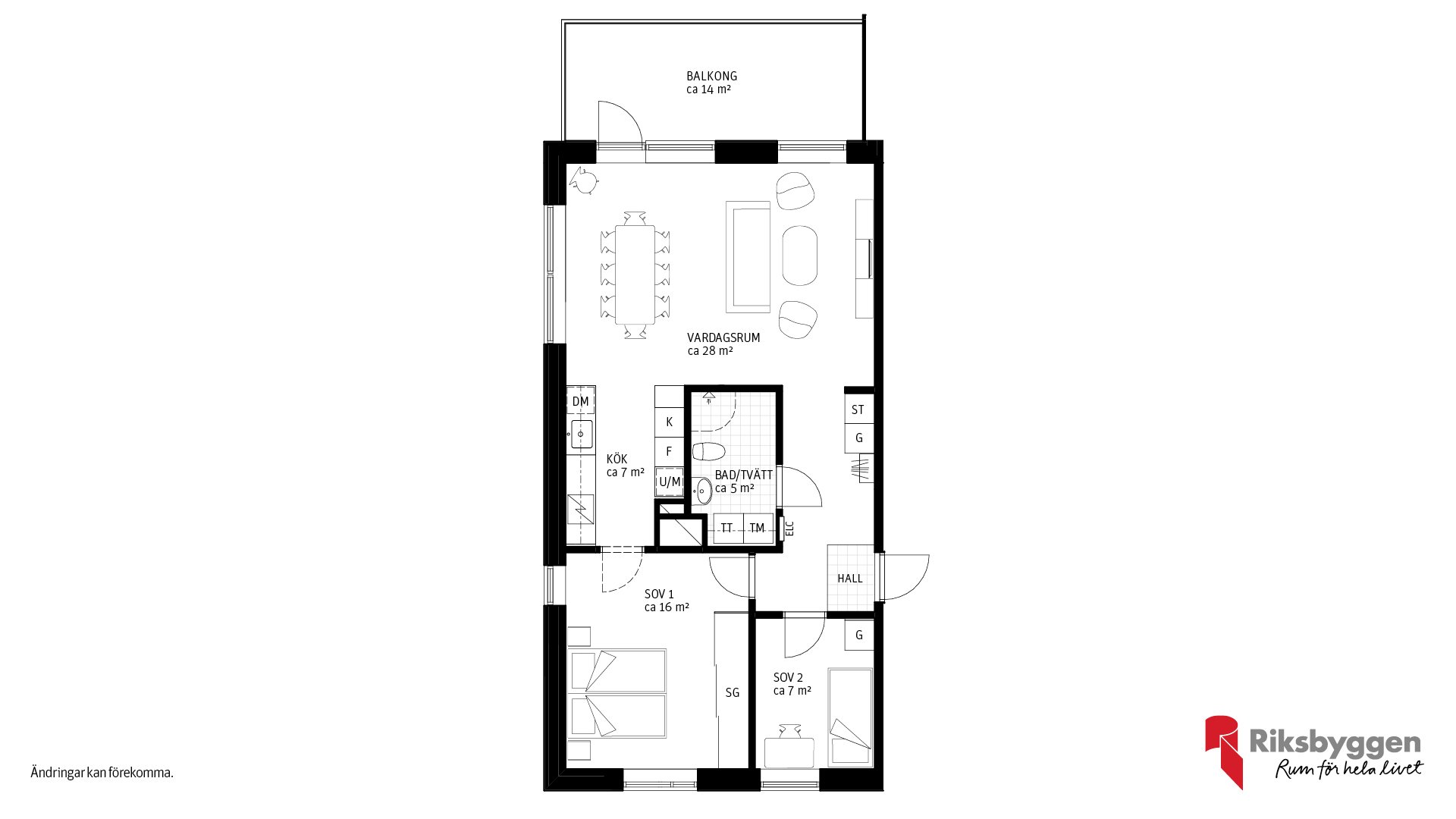 Här har vi tänkt till för att ge dig ett hem som passar just din livsstil. För dig som vill ha extra rymd och sociala ytor finns möjlighet att välja bort vissa innerväggar – till exempel mellan sovrum och vardagsrum – och i stället få ett större, öppnare vardagsrum. Det är ett perfekt alternativ för dig som prioriterar kvadratmetrar och ljus framför antal rum.