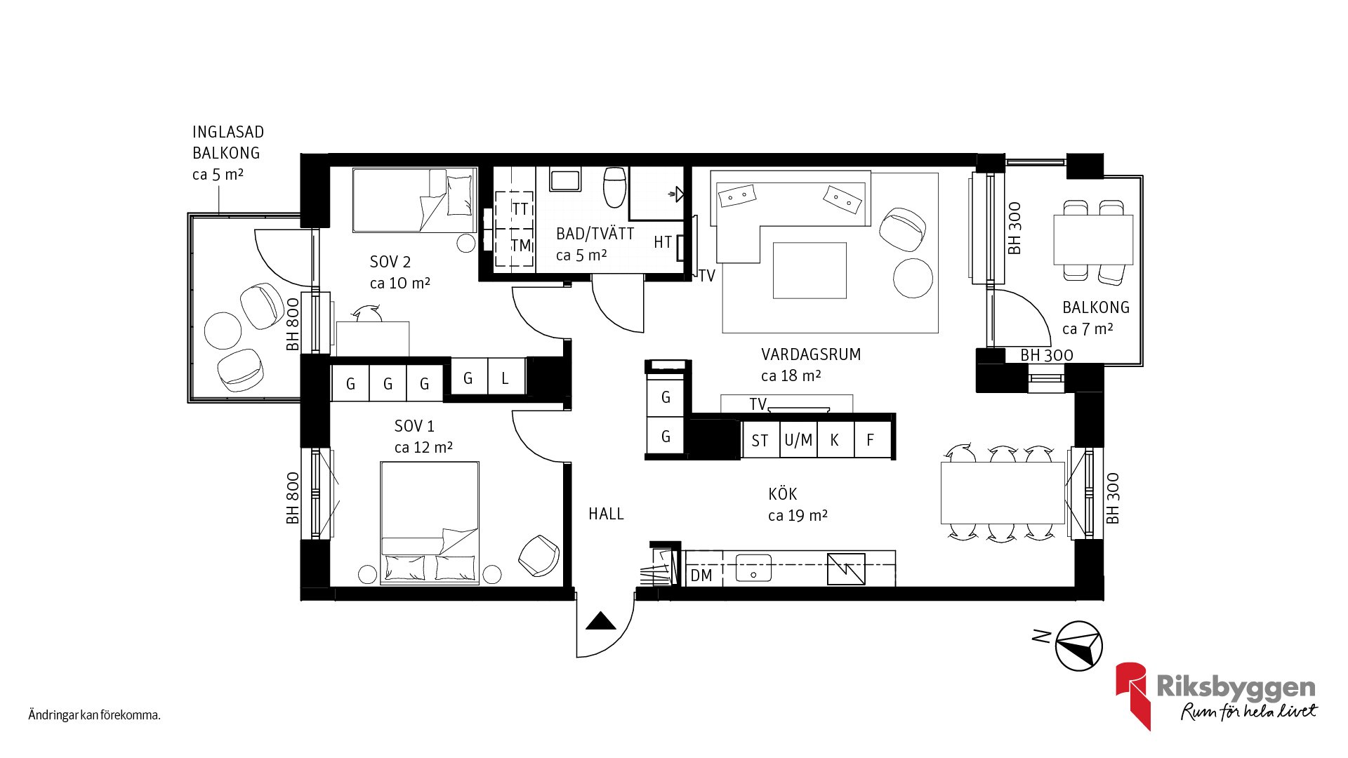 Rymlig 3:a med två balkonger | Riksbyggen