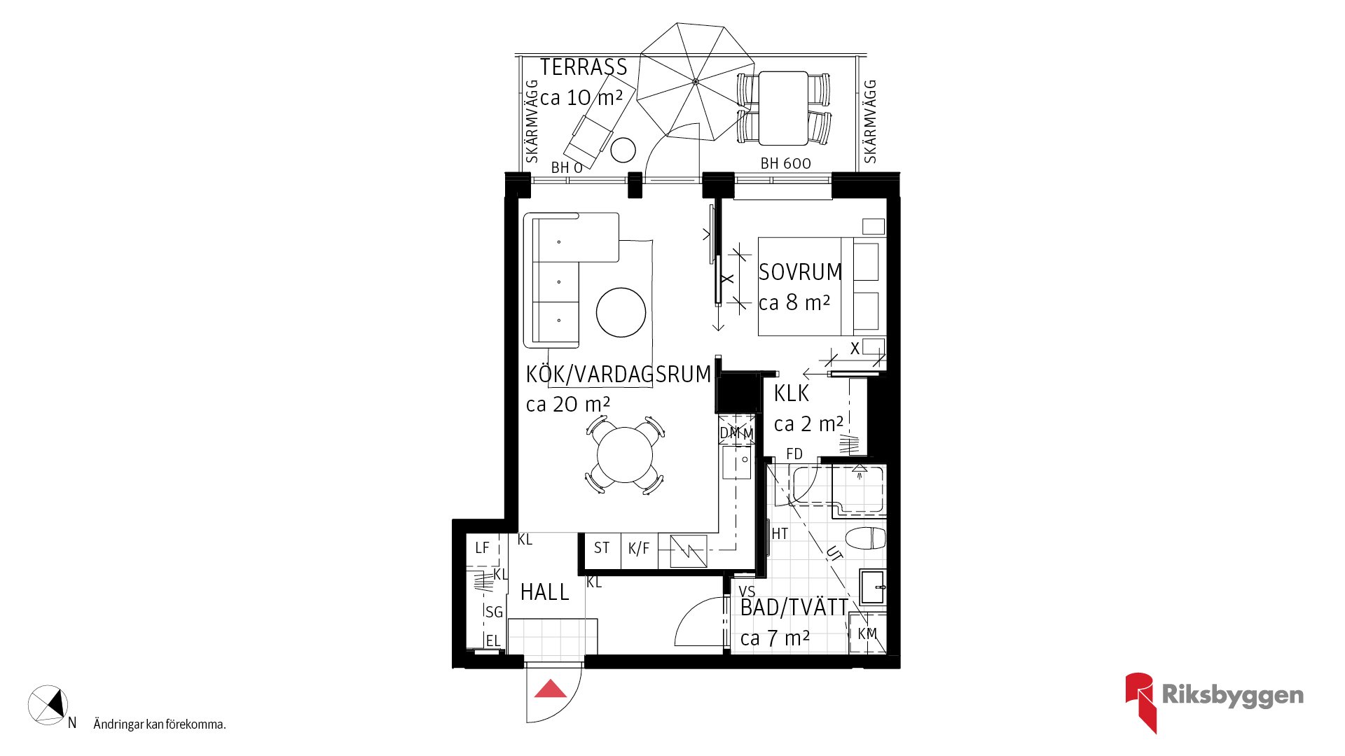 Yteffektiv 2 rum och kök om ca 45 kvm. En härlig planlösning med sovrum, klädkammare och badrum i fil. Välplanerat kök/vardagsrum med utgång till terrass om ca 10 kvm. Hall med skjutdörrsgarderob. Möjlighet att göra tillval på badkar mot frånvalsdörr om så önskas.